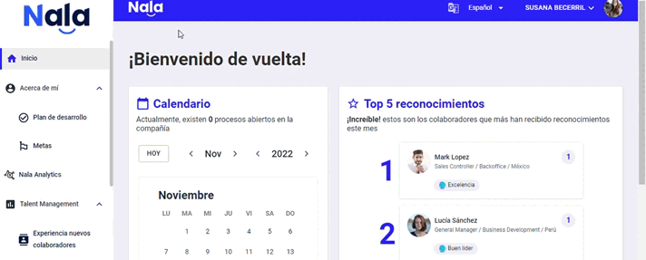 Recibirás en tu correo el link para responder y también encontrarás el link disponible en la página de inicio de Nala, de la siguiente manera: