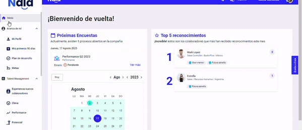 Para ver los resultados de tu equipo, debes seleccionar "Clima" en la sección Talent management, de la siguiente manera: