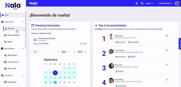 Para visualizar tus resultados solo debes ir a "Mi perfil" y seleccionar "Liderazgo".