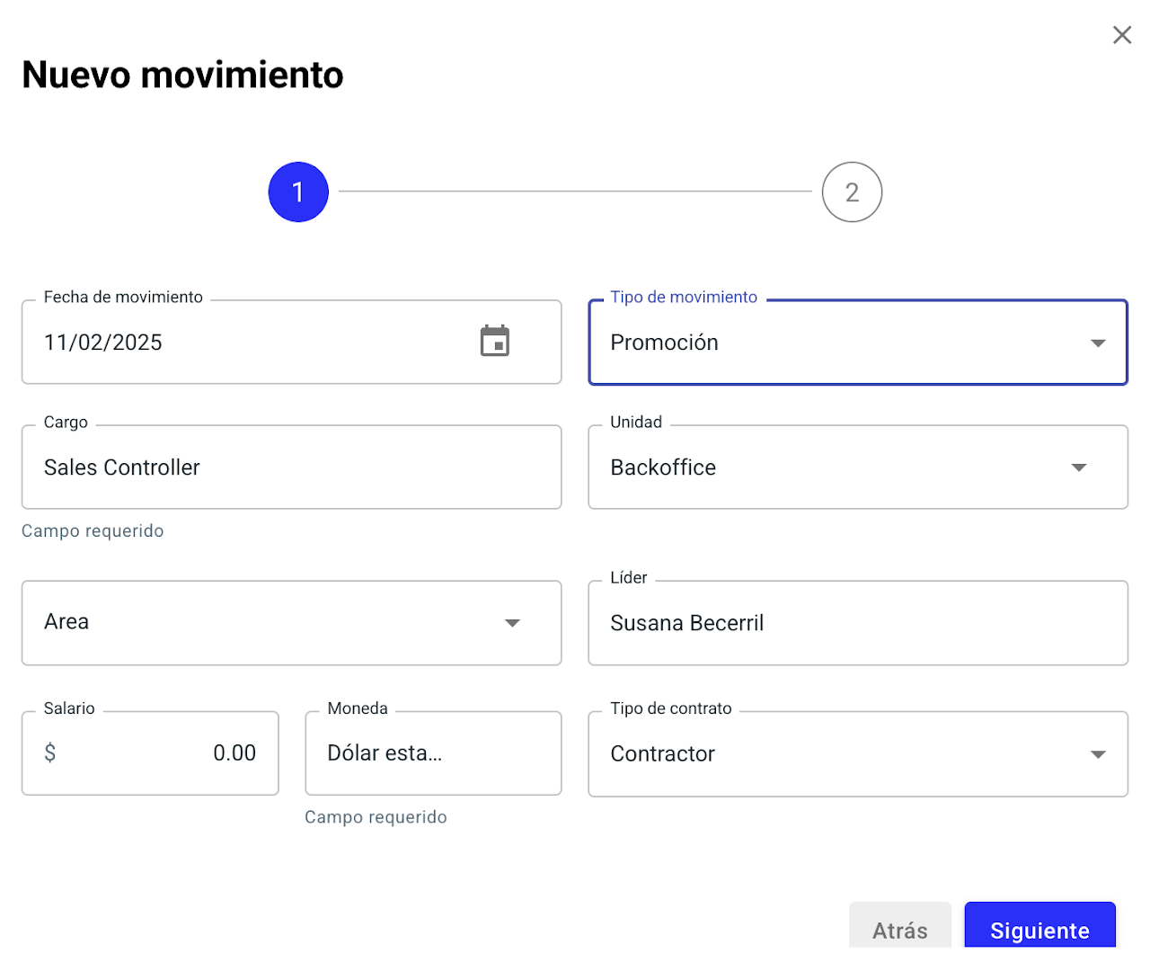 ✅ Movimiento lateral: Modificar su cargo, unidad o líder.
