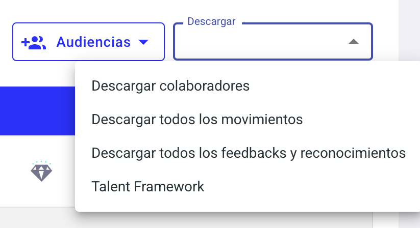 Adicionalmente, puedes crear audiencias y descargar informes de colaboradores o feedbacks y reconocimientos.