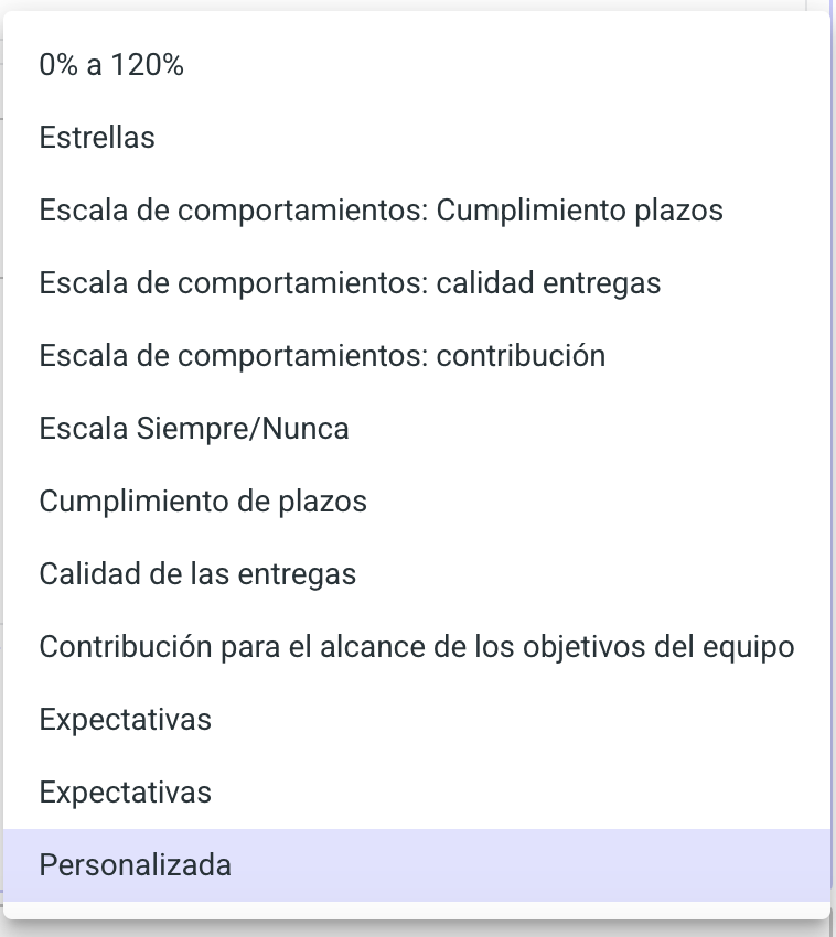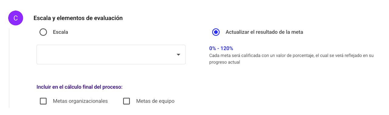 La escala seleccionada será la que utilicen los evaluadores para calificar las metas.