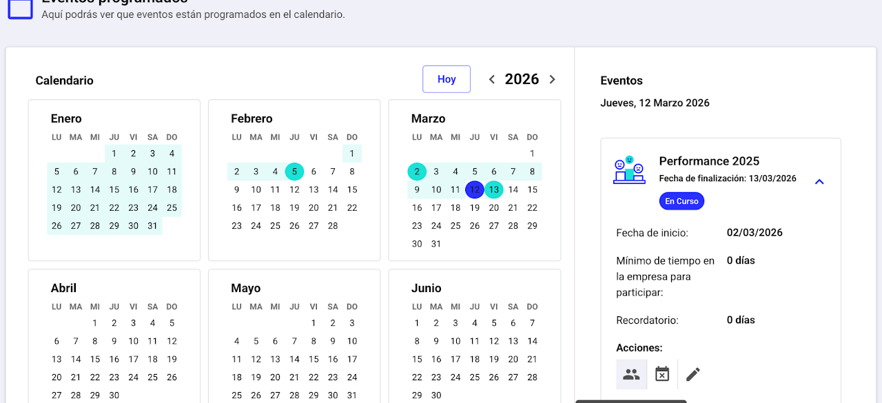 Configura la elegibilidad por antigüedad. Define el tiempo mínimo en la empresa de los participantes (ejemplo: solo se evalúan en Performance después de 90 días tras el ingreso de un colaborador).