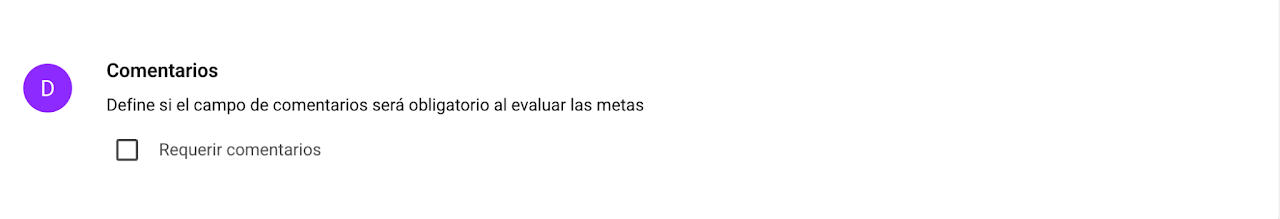 Si quieres forzar a tus colaboradores a enviar una fundamentación de su calificación de cada meta, activa este campo para que no puedan enviar su evaluación sin comentarios.