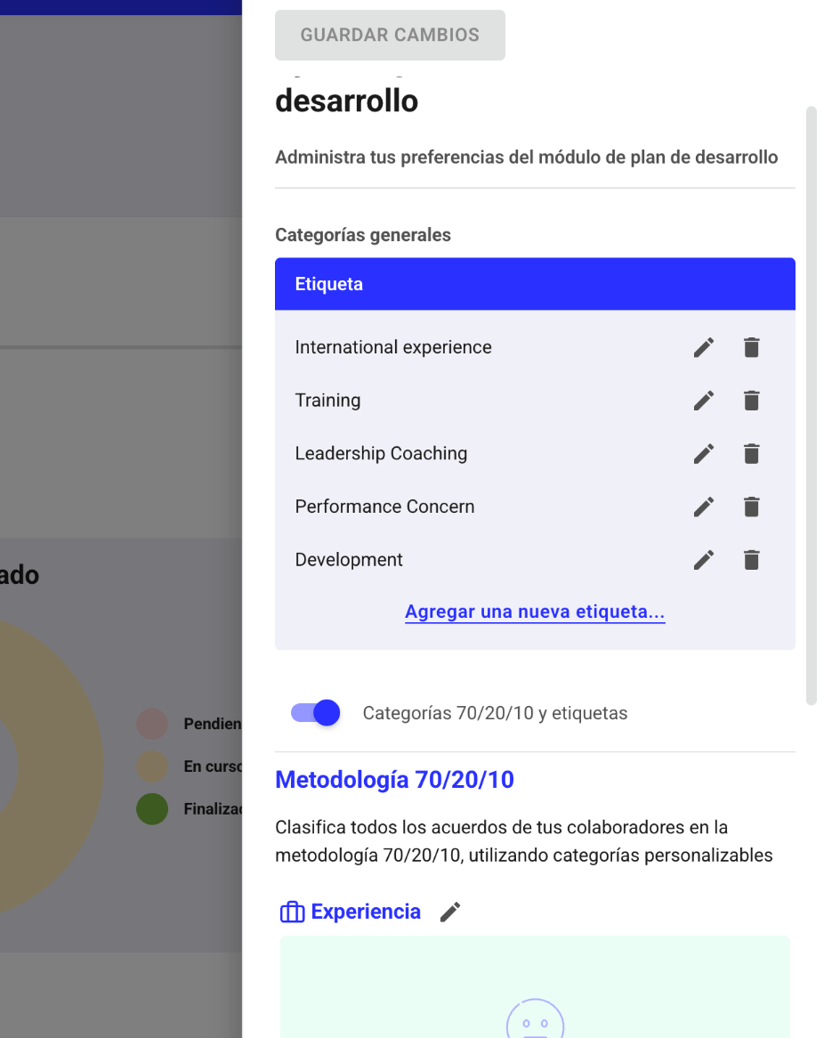 Además, puedes activar la clasificación bajo la metodología 70/20/10, promoviendo un desarrollo más integral: