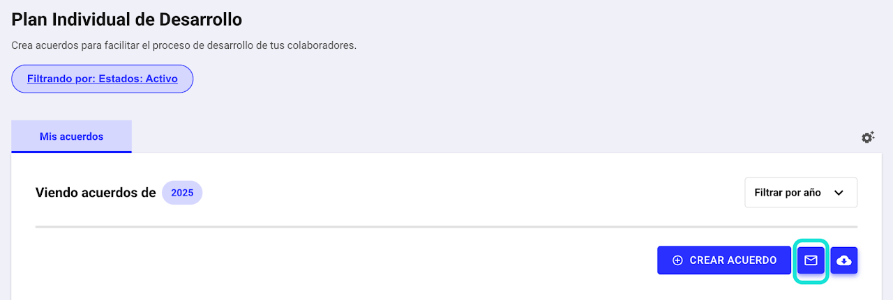 Selecciona el icono de correo en la sección de Plan de Desarrollo.