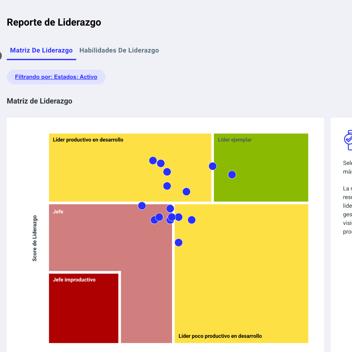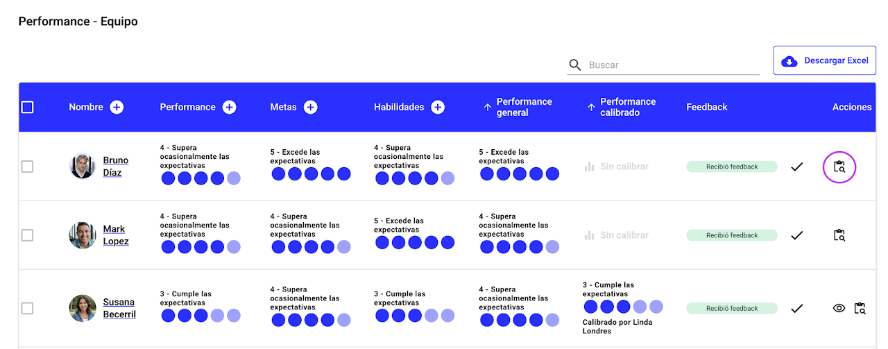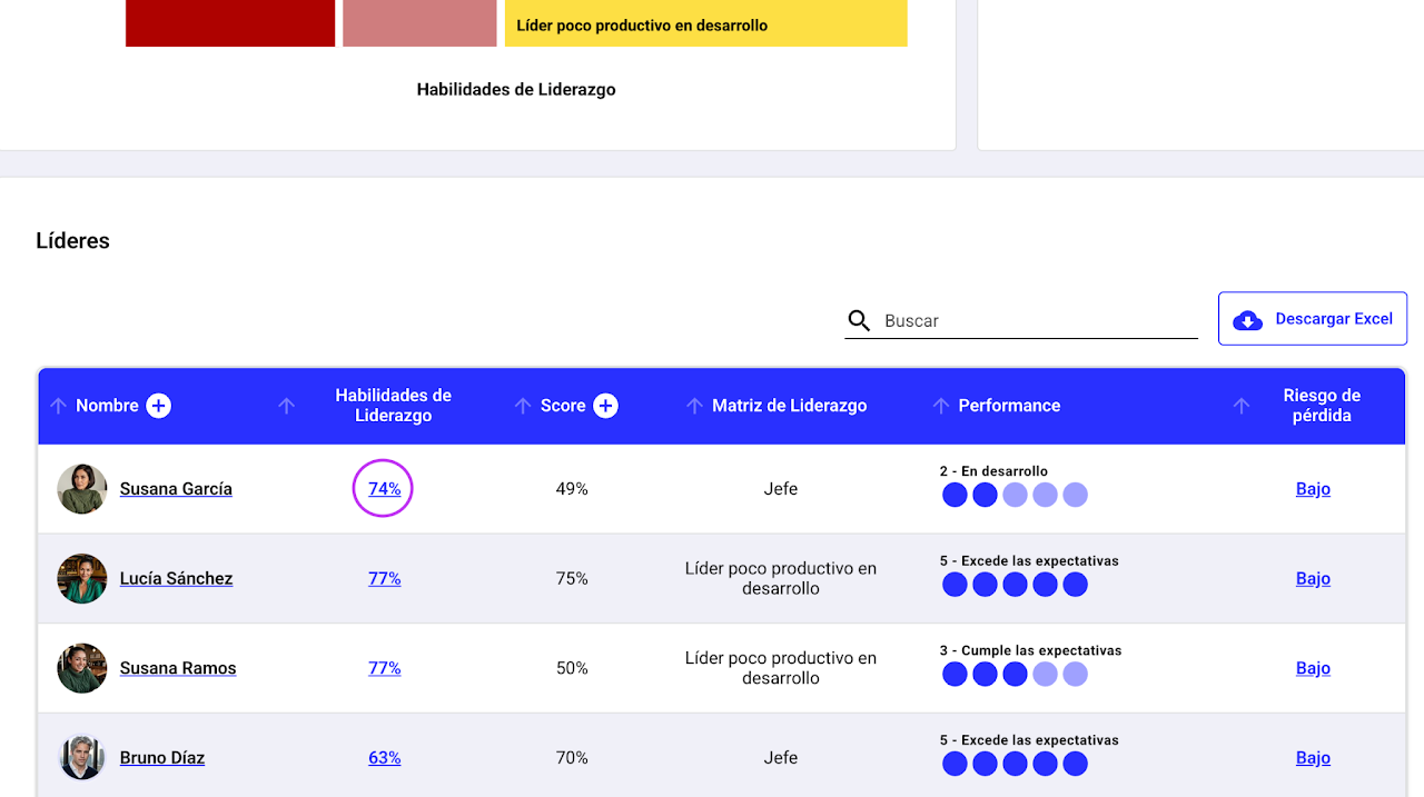 Los administradores o talent managers podrán visualizar los resultados de toda la organización, por país o unidad organizacional, dependiendo de su nivel de acceso.