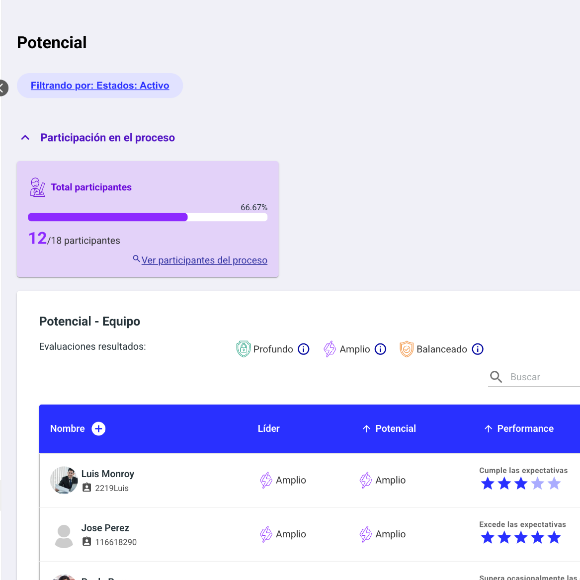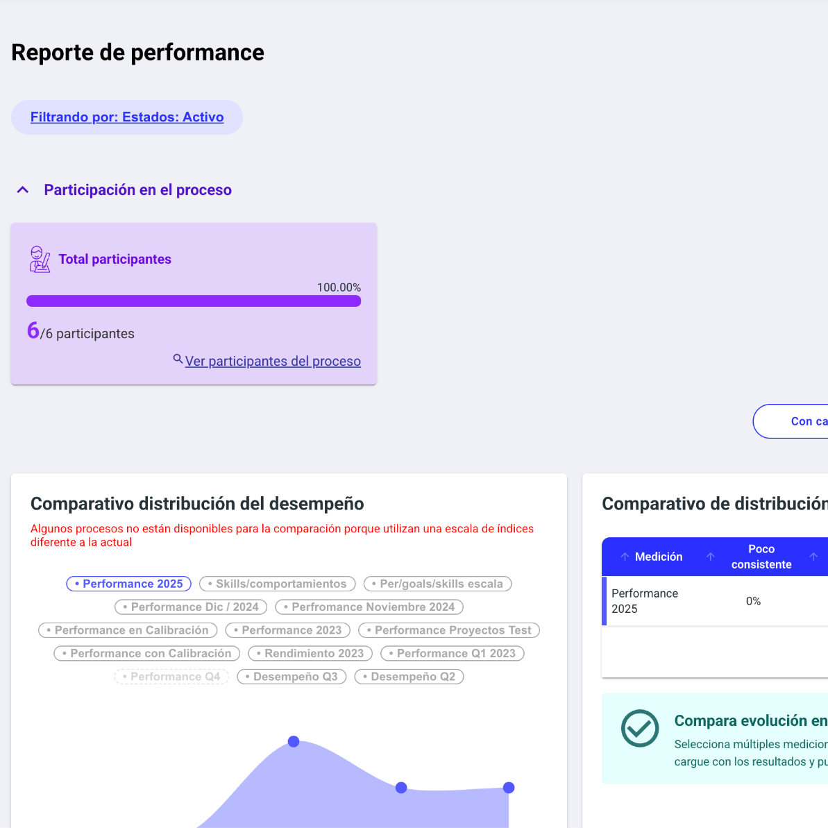 Asegúrate de revisar la tarjeta de participación del proceso, donde podrás ver el avance según tus permisos. También podrás diferenciar la información por colaborador o por líder.