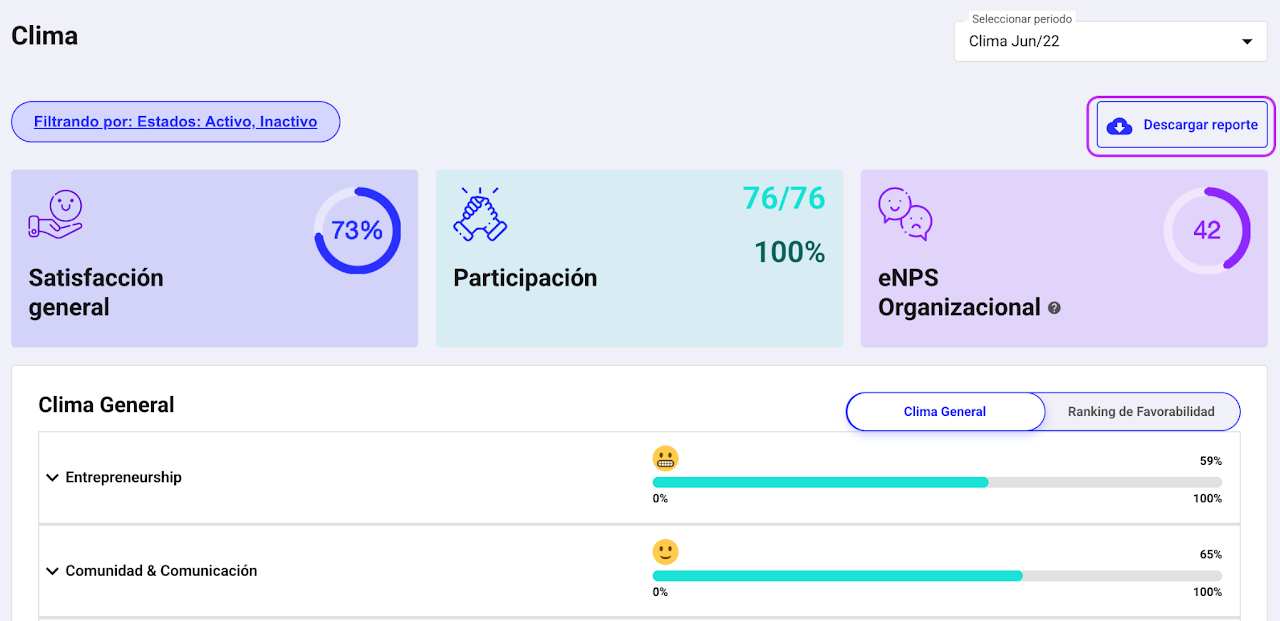 Selecciona “Descargar reporte” para obtener un archivo con los resultados de la encuesta.