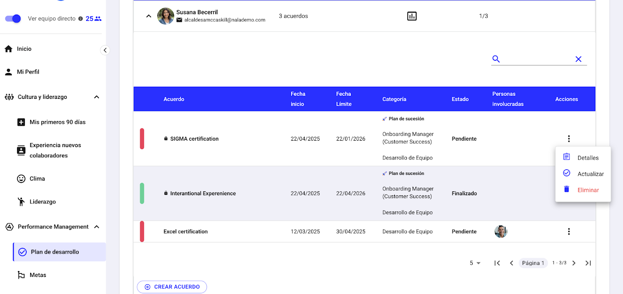 En Nala, puedes crear y dar seguimiento a planes de desarrollo personalizados para cada colaborador, basados en acuerdos uno a uno.